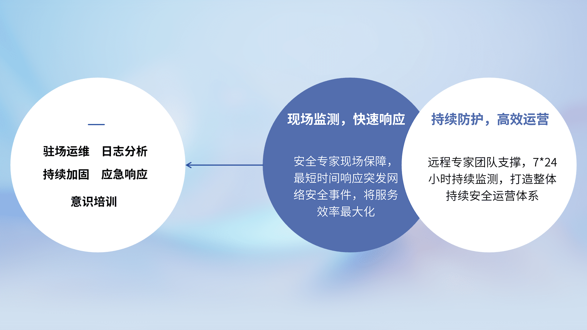 针对客户行业特性,,,提供专属的一站式安全管理服务,,,,帮助客户全面感知网络空间威胁,,通过安全专家的线上、、、线下防护支持,,实现风险闭环,,,,将安全保障常态化,,为客户打造常态化安全运维运营服务。。。
